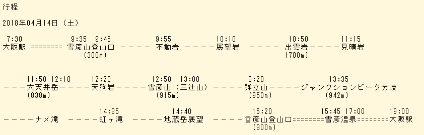 大阪駅を出発して、阪神高速、中国自動車道を乗り継いで、約2時間で雪彦峰県立自然公園内にある登山口に到着した。20台程度の無料の駐車場があり、すでに10台程度の車が停車していた。 雪彦山(せっぴこさん)は姫路市を流れる夢前川の最深部にあり、新潟県の弥彦山(やひこやま)、福岡県の英彦山(ひこさん)とともに日本三彦山として知られ、 修験道の修行の山として開かれた。石英粗面岩の険しい岩壁はロッククライマーに人気がある。雪彦山は大天井岳、洞ヶ岳、鉾立山、三辻山の四峰の総称である。 登山口は標高300mにあり、鉾立山の標高が950mだから、標高差650mであるが、登山道は急峻でクサリ場も多くある。 登山道はいきなりの急登となった。出発して10分で不動岩に到着した。標識のAは登山コースを表し、2は場所を表す。救助を求めるときの標識である。 登山口を出発して25分で展望岩に着いた。そこからは、大天井岳と洞が岳(不行岳、地蔵岳、三峰岳)の岩稜がよく見える。雪彦山の代表的な山容である。 ムラサキヤシオツツジの花が咲いていた。